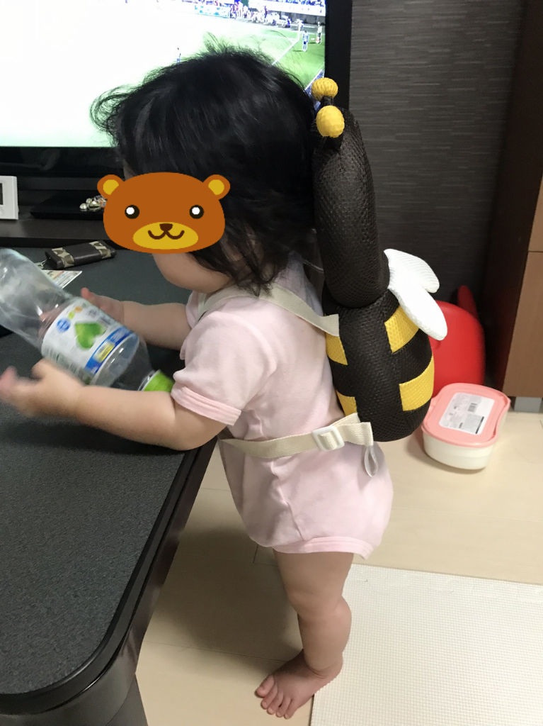 最後に、つかまり立ちをしながらペットボトルで遊ぶ、ゆめさん。